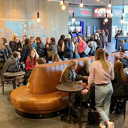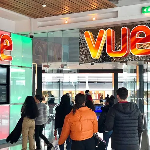 Collection of images showing photos of people at events, tutor2u publications, CPD courses, and student events at Vue cinemas.